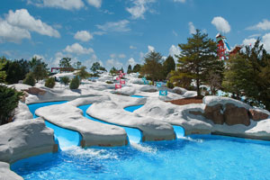 In the shadow of Summit Plummet you'll zoom down a huge 90-foot high-speed water slide.